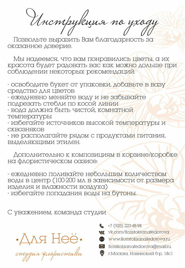 Также заметьте, что цветы и букеты надлежащего качества не подлежат возврату и обмену